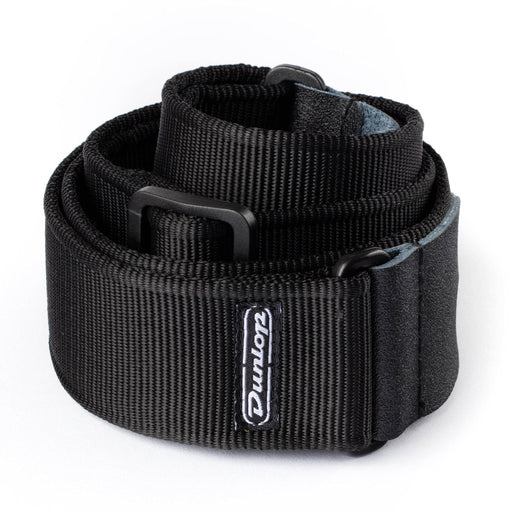 Premium Jim Dunlop D3809BK guitar strap featuring patented comfort edge webbing and 100% leather ends. This 2" wide strap combines original jacquar...
